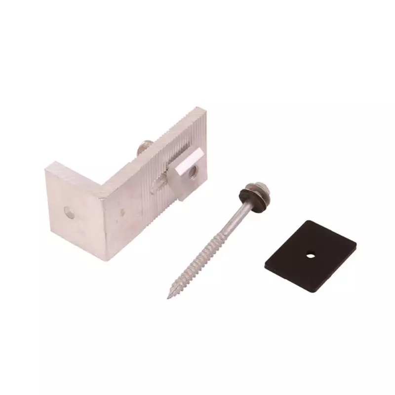 Универсальный крепеж L-образной формы предназначен для монтажа солнечных панелей на ровную поверхность или на каркас из алюминиевого профиля. Фурнитура изготовлена из анодированного алюминия, что гарантирует ей длительный срок службы и небольшой вес. Крепеж не ржавеет при контакте с водой, что позволяет его использовать при наружном монтаже систем солнечных панелей.